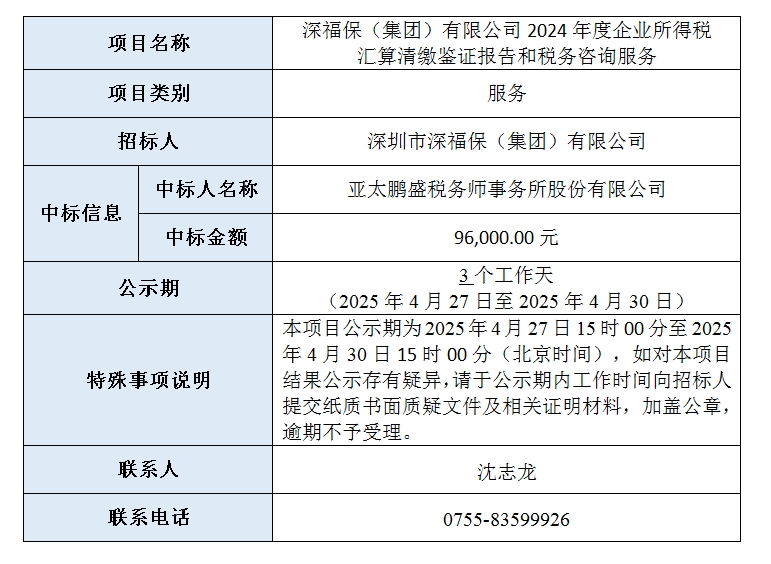 好博(集团)有限公司2024年度企业所得税汇算清缴鉴证报告和税务咨询服务已完成评审,现将本项目评审的相关情况及结果进行公示,具体内容如下: