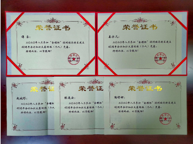 近日,在深圳市会计协会举办的深圳经济特区建立40周年会计改革创新有奖征文活动中,经专家评审委员会评选,集团财务总监郭冬梅的参赛作品《特区天地,会计情怀》荣获一等奖,集团预算财务部陶舒妍的参赛作品《乐享共享乘风去,以才创财破浪来》荣获三等奖。获奖作品回顾了集团财会人员建设深圳经济特区的从业历程,凝结了集团财会人员的成长感悟,抒写了集团财会人员的职业情怀,展现了集团财会人员积极进取的精神风貌。